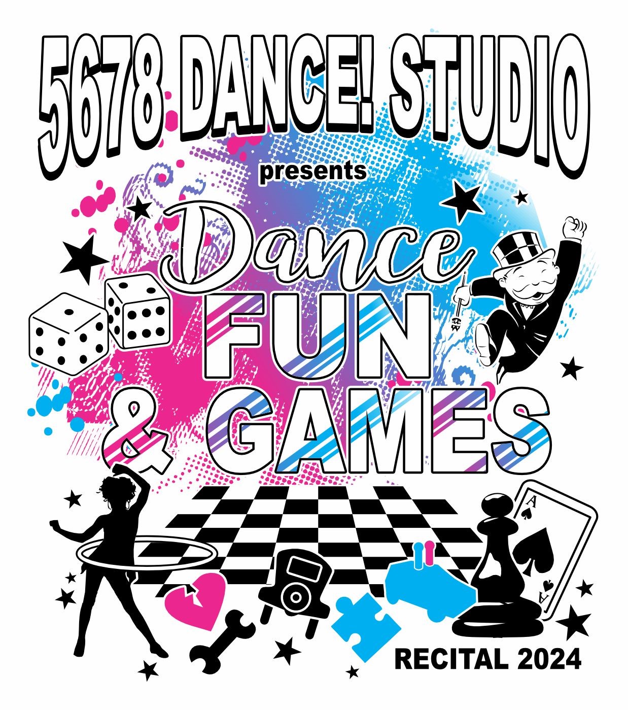 All of the songs in our show will represent different board games, card games, video games or sports! The recital is more than performing on the stage. Each Dancer learns ways to express themselves, confidence, teamwork, and they get a feeling of accomplishment. We are very appreciative to showcase all that our 5678 dancers have been working on this year! Join us for an outstanding performance!